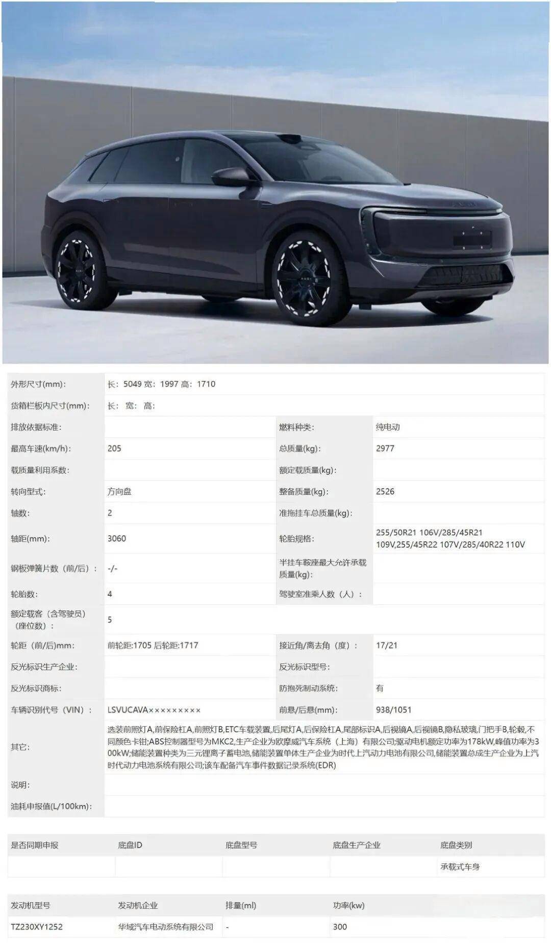 新車長寬高達5049/1997/1710mm,軸距3060mm,尺寸全面超越AUDI E5 Sportback,且寬高數據優于特斯拉Model X、蔚來ES 8。提供4座和5座兩種布局,超3米軸距保障第二排腿部空間與后備箱容積,既能滿足家庭出行,也適配商務場景需求。輪胎可選前255/50R21+后285/45R21、前255/45R22+后285/40R22兩種規格,兼顧舒適與運動屬性。